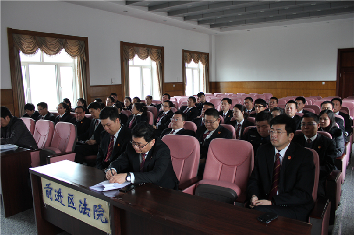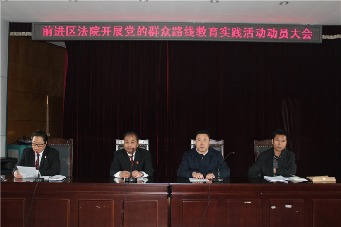 3月19日下午,前进区法院召开了党的群众路线教育实践活动动员大会,会议由副院长王力主持,院党组书记、院长刘冰同志做动员讲话,前进区委第九督导组组长王成刚等同志出席会议并讲话,区法院全体干警参加了会议。