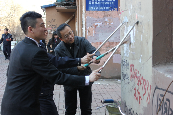 4月3日下午,为积极响应区委号召,前进区人民法院组织干警以实际行动践行“春风行动”目标。此次活动共组织干警15人,由副院长带队,深入佳木斯市保卫社区,对政府小区内的小广告进行了集中清理,并对清理后的墙面进行了粉刷。“春风行动”的开展,受到了社区居民的热烈欢迎和一致好评,收到了良好的社会效果。