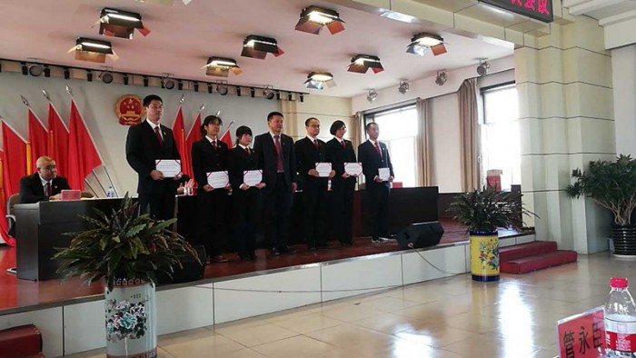 5月10日下午,前进区召开第十六届人民代表大会常务委员会第五次会议,区人大主任揣伟佳同志带领人大班子成员和全体委员,对前进法院全体法官通过宣读供职发言、随机提问、抽题问答的形式进行了任职考核,会上前进法院党组书记、院长张甲光同志宣读了前进法院法官任免职的提请,经区人大全体委员投票选举,前进法院全体法官全部全票当选,并在副院长王莉、刘旭的带领下进行了任职宣誓。