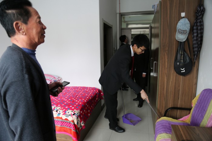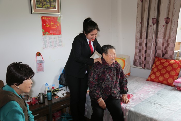 来到养护中心,青年干警与养老中心的老人们拉家常,给老人们按摩,谈心,了解敬老院的建设情况和使用、管理情况以及老人们的住宿条件、身体状况等,并送去慰问物品,用自己的一份力量给予老人心灵的慰藉,使他们感受到社会大家庭的温暖和关爱,干警们真诚的祝愿老年朋友们身体健康、安享晚年。