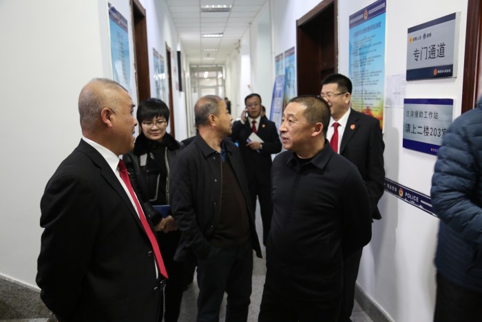 韩辉一行在佳木斯市前进区法院实地查看了一站式诉讼服务中心建设情况,详细询问了干警工作情况,了解了诉前调解、小额速裁工作开展情况并召开座谈会。