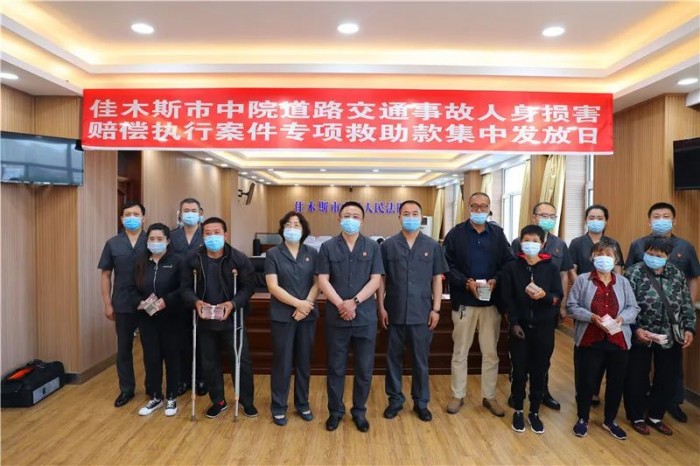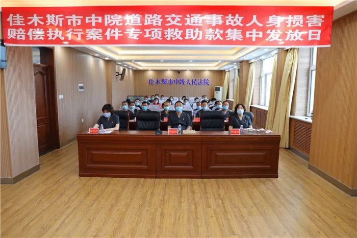6月17日上午9时,随着黑龙江高院党组成员、执行局局长王启胜按下“启动键”,佳木斯市中级人民法院启动了全省法院道路交通事故人身损害赔偿执行案件专项救助款集中发放日活动,前进区人民法院两起道路交通事故案件的申请人分别领取了5万元专项救助金。