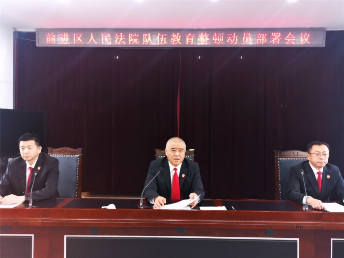 为全面开展好队伍教育整顿工作,将队伍教育整顿工作落到实处,3月8日下午,前进区人民法院召开全院队伍教育整顿动员部署会议,院党组书记、院长张甲光参加会议并作动员讲话,会议由副院长赵庆林主持,全院干警参加会议。