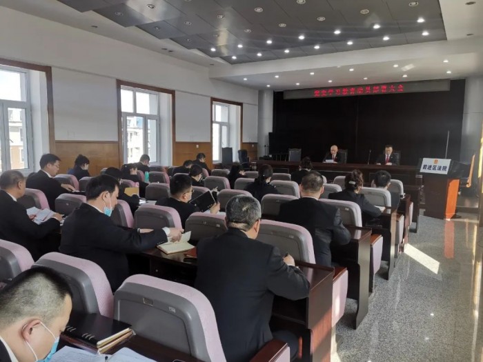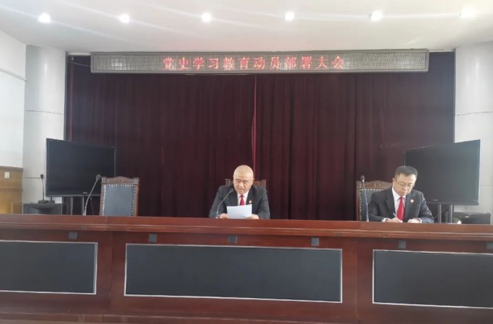 3月14日下午,前进区人民法院召开党史学习教育动员部署大会,会议由院党组书记、院长张甲光主持,全体在编干警参加会议。