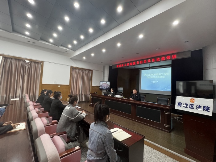 为推进“能力作风建设年”活动深入开展,进一步提升书记员业务技能和审判工作服务保障的能力和水平,打造一支职业化、专业化、规范化的书记员队伍。5月17日,前进区人民法院组织开展书记员业务技能培训,此次培训会由副院长黄忠梁主持,综合审判庭法官助理张雨彤主讲。