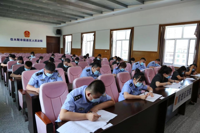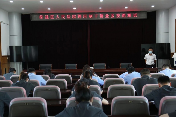 为持续推进“能力作风建设年”活动,积极创建“学习型法院”,进一步加强聘用制干警的考核管理,努力提高聘用人员政治素质、业务能力和服务水平,打造新时代革命化、正规化、专业化、职业化的司法辅助铁军。7月22日,前进区人民法院开展2022年度聘用制干警综合能力考核工作,邀请了区组织部、政法委相关部门工作人员现场进行监督,院党组成员全程巡考,30名聘用制干警参加测试考核。