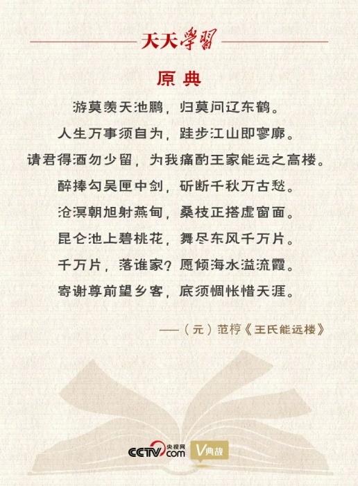 《王氏能远楼》是“元诗四大家”之一范梈所作的一首歌行体古诗。全诗立意高远,境界开阔,借与友人登楼畅饮,抒发了对人生变幻无常的感慨,表达了作者乐观、旷达的生活态度。全诗共十六句,每四句为一意。