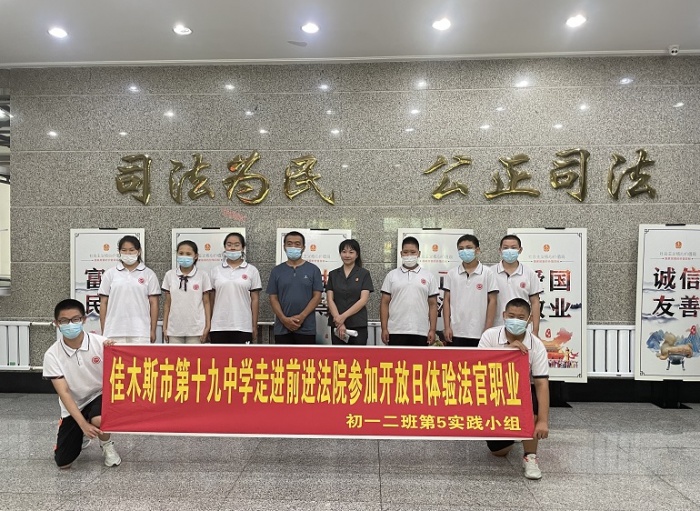 今天下午,为进一步加强青少年法治安全教育,关爱未成年人身心健康与安全,提高青少年知法、学法、守法意识,丰富青少年暑假期间业余生活,前进区人民法院组织开展“有法同行,共护未来”第四十五次公众开放日活动,邀请佳木斯市第十九中学的同学们,通过参观法院建设,体验审判环境、观看教育片、讲解典型案例等环节,将法治教育内容精准输送到每一位学生的心中。