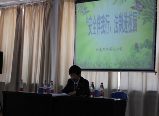 2013年5月6日佳木斯市中级人民法院与佳木斯市前进区人民法院、佳木斯市前进区团委在佳木斯市前进区第七小学联合举办“安全伴我行、法制进校园”的法制宣传主题教育活动。
